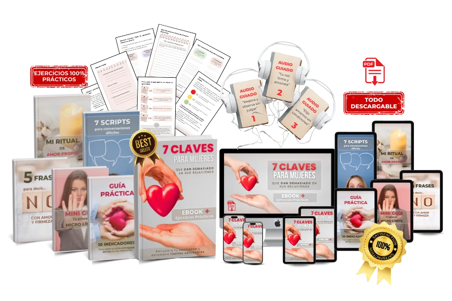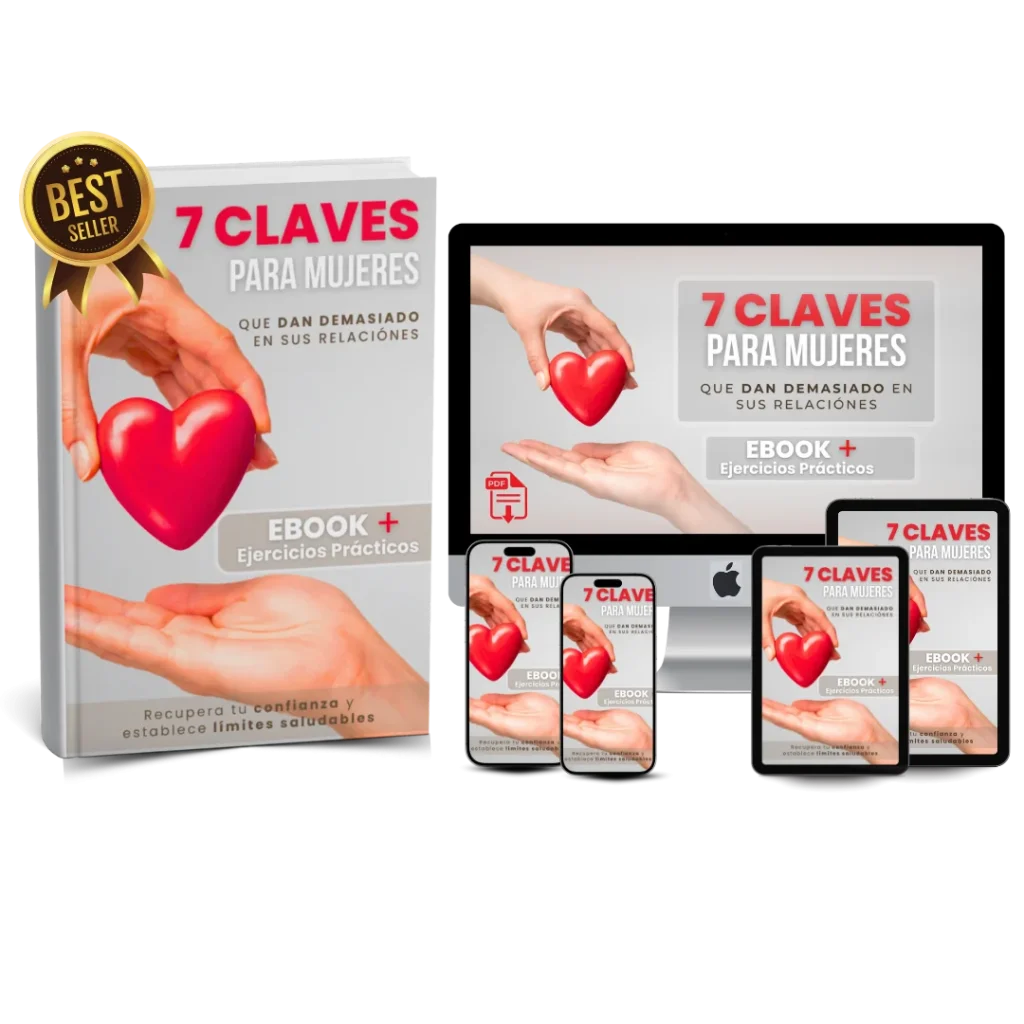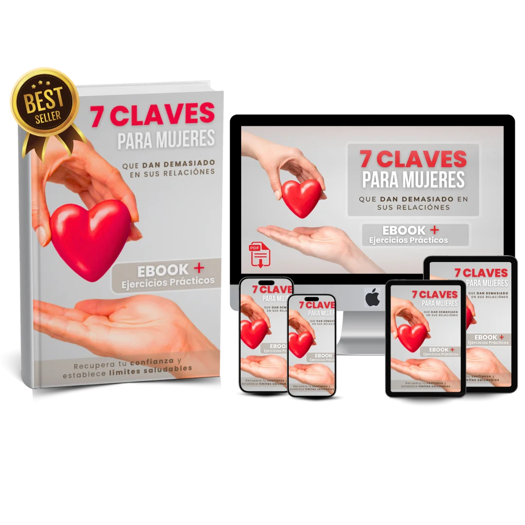 El ebook está basado en patrones emocionales que miles de mujeres viven al dar demasiado. Las 7 claves y sus ejercicios te guían de forma simple y concreta para recuperar equilibrio, energía y seguridad personal.
